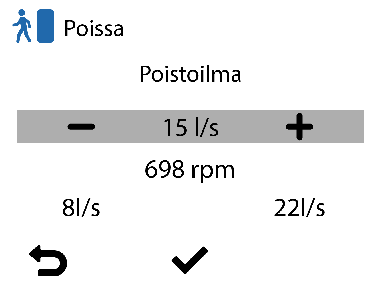 Aseta Poissa-tilan poistoilmavirrat, ja säädä venttiilit