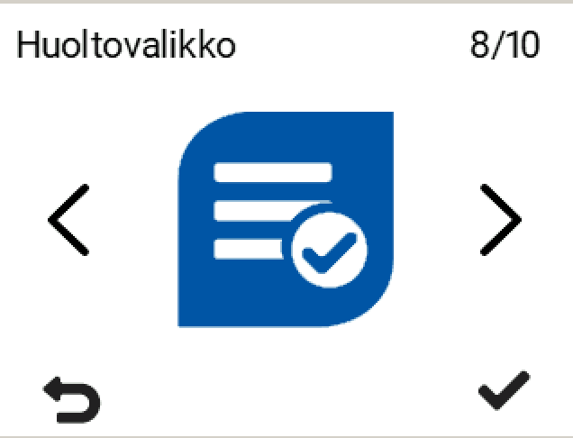 - Valitse nuolipainikkeilla Huoltovalikko.