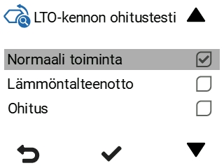 - Valitse nuolipainikkeilla LTO-kennon ohitustesti: