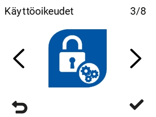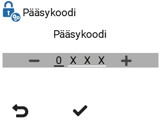 Pääsykoodilla voidaan rajoittaa ilmanvaihtokoneen toimintojen käyttöä eri käyttäjätasoilla. Jos pääsykoodin kysely on käytössä ja käyttäjätaso on asetettu suppeaksi tai normaaliksi, tietyt asetukset vaativat koodin syöttämistä ennen kuin niitä voi muuttaa.