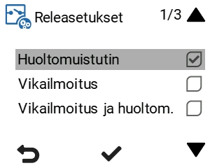 Releasetukset-valikosta voit asettaa ilmanvaihtokoneen 24 V releen toimintatavan. Vain yksi toimintatapa voi olla kerrallaan valittuna.