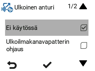 - Valitse ulkoisen anturin toimintatapa nuolipainikkeilla. Vaihtoehdot ovat: