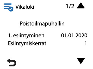 Vikaluettelon sisältävä Vikaloki -näyttö avautuu: