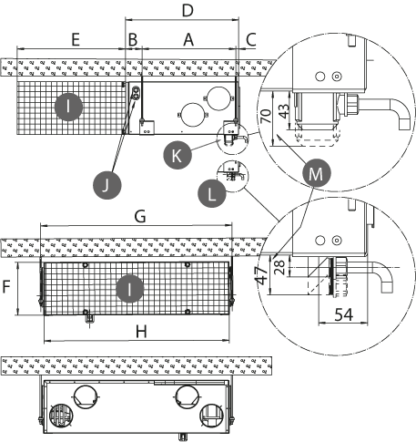 Das Gerät muss waagerecht montiert werden, damit das Kondenswasser, das sich im Bodenbehälter sammelt, durch den Kondenswasserablauf ablaufen kann.