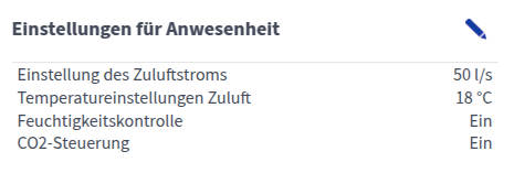 Im Anwesend-Modus können Sie die Daten des Lüftungsgerätemodus ansehen.