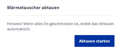 - Das Abtauen kann im Wärmetauscher abtauen-Bereich begonnen werden.