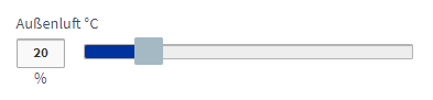 - Stellen Sie die Außenluft-Temperatur durch Bewegen des blauen Außenluft °C-Schiebereglers auf den gewünschten Wert ein.