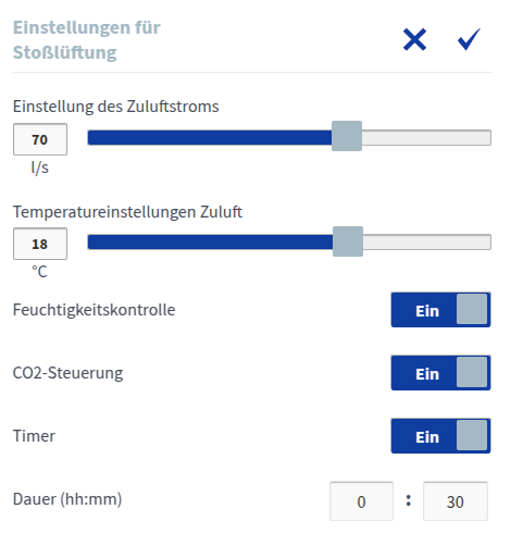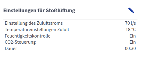 Die Einstellungen des Stoßlüftung-Modus lassen sich wie folgt bearbeiten: