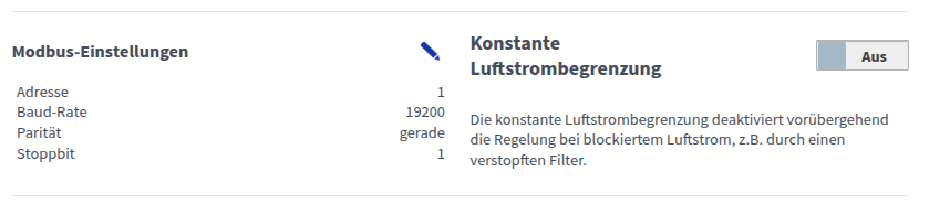 Einstellung der Luftströme für den Abwesenheits- und Stoßlüftungsmodus