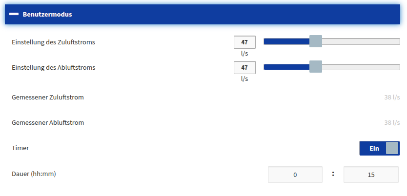 Einstellung der Luftströme für den Abwesenheits- und Stoßlüftungsmodus