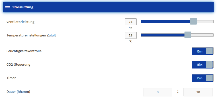 Ventilator-Grundeinstellungen und Lüftungsmodi