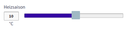 Stellen Sie die Heizperiode ein, indem Sie den Schieberegler auf den gewünschten Wert bewegen. Der Einstellbereich liegt zwischen 0 °C und +19 °C. Die Werkseinstellung ist +12 °C.