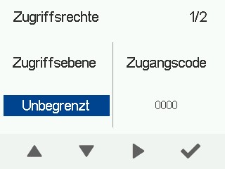 Die Zugriffsebene bestimmt, welche Einstellungen der Benutzer ändern und aufrufen kann. Die Zugriffsebenen sind:
