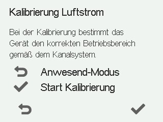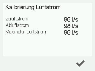 - Nach der Kalibrierung wird der tatsächliche maximale Luftstrom des Geräts in Bezug auf die verwendeten Kanälen angezeigt.