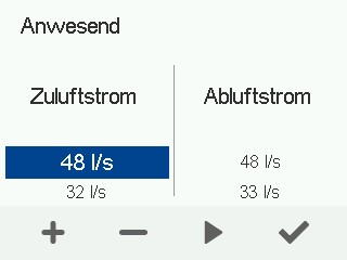 - Stellen Sie die Zu- und Abluftströme für den Anwesend-Modus ein und justieren Sie die Ventile entsprechend dem Lüftungsplan.
