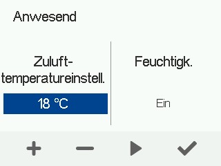 - Sie können die Zulufttemperatureinstellung anpassen und die Luftfeuchtigkeits- und Kohlendioxidregelung deaktivieren.