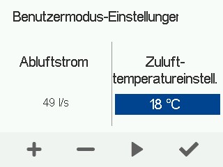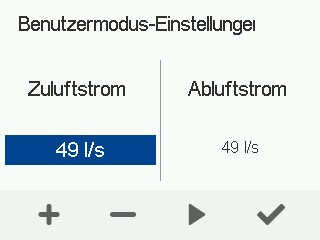 - Stellen Sie die Zu- und Abluftströme für den Benutzermodus-Modus ein und justieren Sie die Ventile entsprechend dem Lüftungsplan.