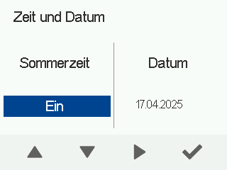 - Wählen Sie mit den Pfeiltasten Zeit und Datum.