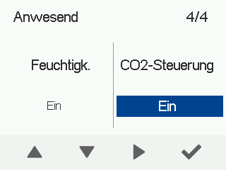 - Drücken Sie auf die Pfeiltasten, um die automatische Ventilatorleistungsregelung basierend auf dem Kohlendioxidgehalt zu aktivieren oder zu deaktivieren.