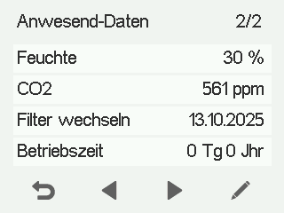 - Kohlendioxid — Gibt den höchsten von den Sensoren gemessenen Kohlendioxidwert an.
