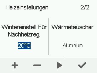 - Wählen Sie mit den Pfeiltasten Heizregistereinstellungen: