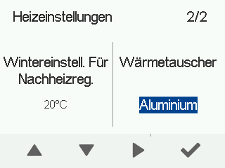 - Wählen Sie mit den Pfeiltasten Wärmetauscher: