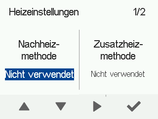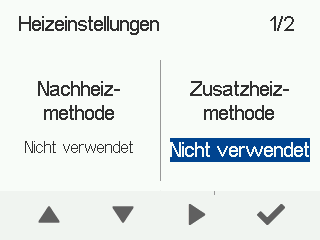 - Wählen Sie mit den Pfeiltasten das Zusatzheizverfahren: