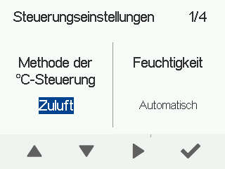 6. Drücken Sie auf die Pfeiltasten, um das Verfahren für die Zulufttemperaturregelung zu wählen.