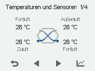 - Abluft — Gibt die Temperatur der Luft an, die aus den Räumlichkeiten abgeführt werden soll und in das Gerät strömt.