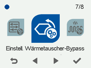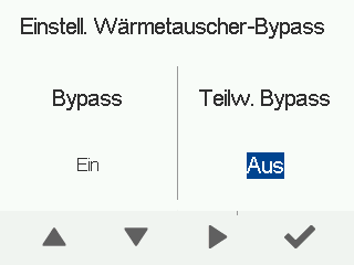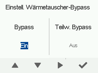 - Wählen Sie mit den Pfeiltasten Bypass-Einstellungen des Wärmetauschers