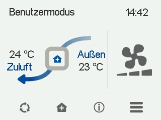 - Stellen Sie mit den Plus- und Minus-Tasten die Zuluftventilatorleistung als Prozentwert der maximalen Leistung für den Benutzer-Modus ein.Tipp: