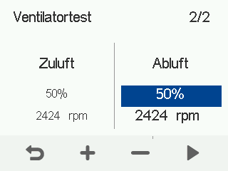 Führen Sie den Ventilatortest durch, um die Ventilatorfunktion des Lüftungsgeräts auf einfache Weise zu überprüfen.
