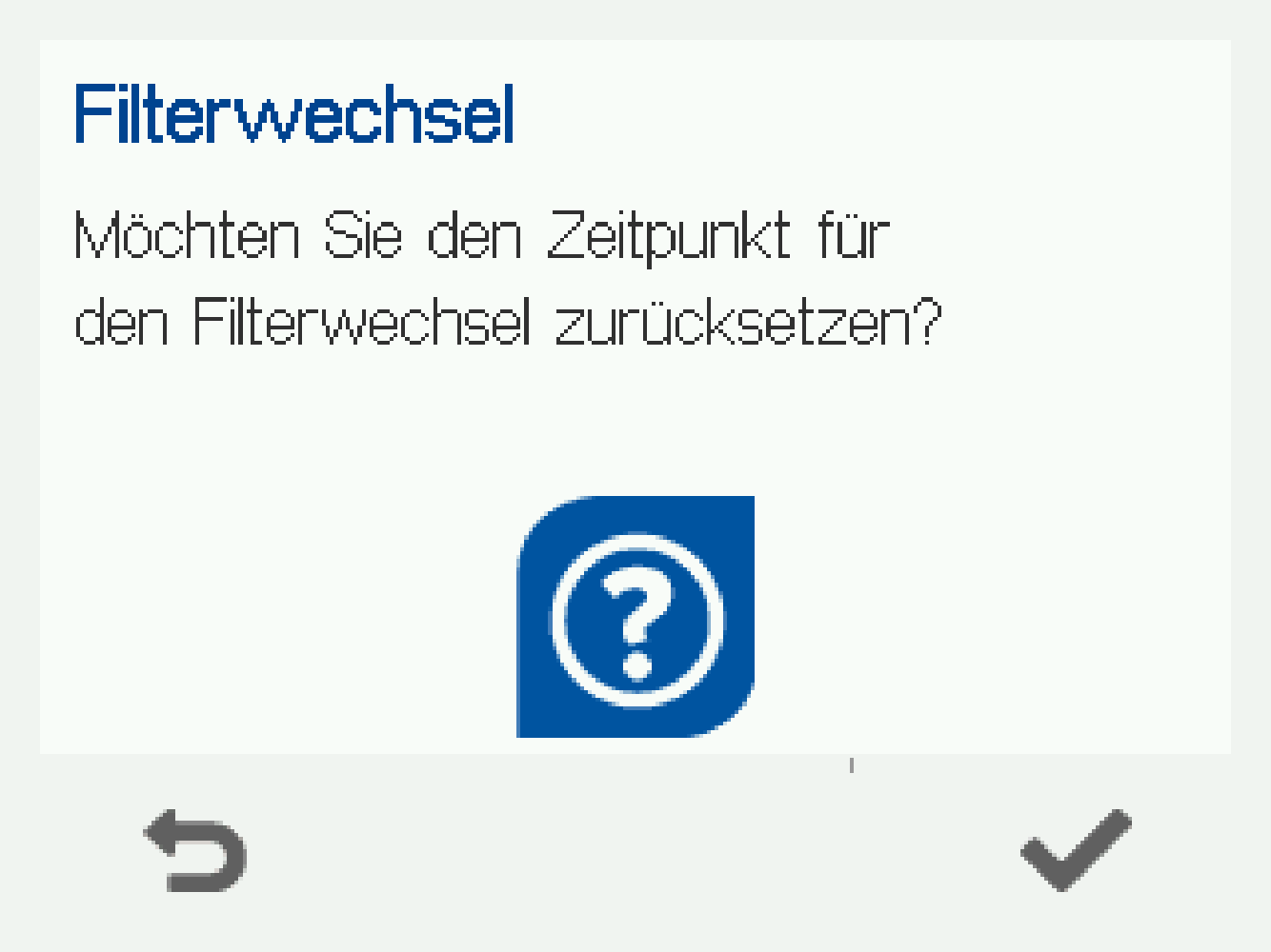 Das Gerät legt eine automatische Wartungserinnerung fest, um Sie daran zu erinnern, die Filter gemäß dem eingestellten Wartungsintervall zu wechseln. Siehe Erinnerungsintervall für den Filterwechsel einstellen und Filter-Wartungserinnerung.