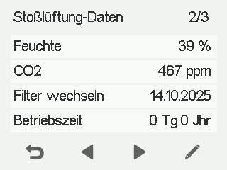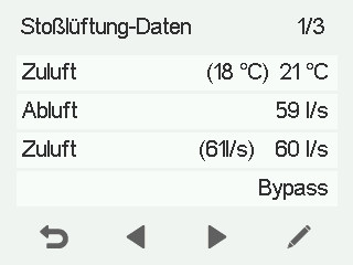 Zum Durchsehen der Eckdaten des Stoßlüftung-Modus: