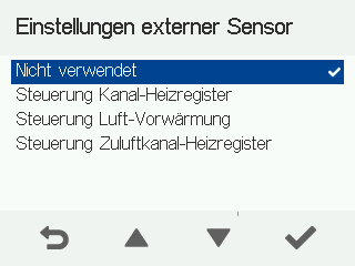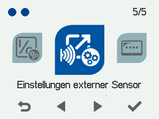 - Wählen Sie mit den Pfeiltasten Einstellungen des Außensensors: