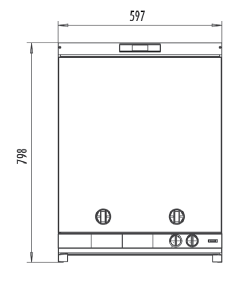Die Gesamthöhe des Lüftungsgeräts und der Abzugshaube beträgt 798 mm (Installationsraum + 2 mm).