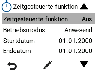 Wenn die zeitgesteuerte Funktion aktiviert wird, wird das Wochenprogramm deaktiviert. Wenn das Wochenprogramm vor der Aktivierung der Zeitfunktion aktiv war, wird es nach Ablauf des festgelegten Zeitraums automatisch wieder aktiviert.