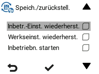 Inbetriebnahme-Einstellungen wiederherstellen — Stellt die bei der Inbetriebnahme vorgenommenen Einstellungen des Lüftungsgeräts wieder her.