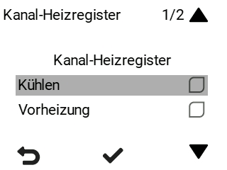 Das Kanalregister kann im Außen- oder im Zuluftkanal platziert werden. Wird das Kanalregister im Außenluftkanal platziert, kann es als Vorheizung und/oder Kühlung verwendet werden. Wird das Kanalregister im Zuluftkanal platziert, kann es nur als Kühlung verwendet werden.