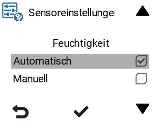 - Wählen Sie Luftfeuchtigkeit und verwenden Sie die Pfeiltasten, um die Einstellmethode für die Feuchtigkeitsregelung festzulegen.