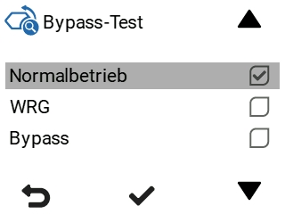 - Wählen Sie mit den Pfeiltasten Wärmetauscher-Bypass-Test: