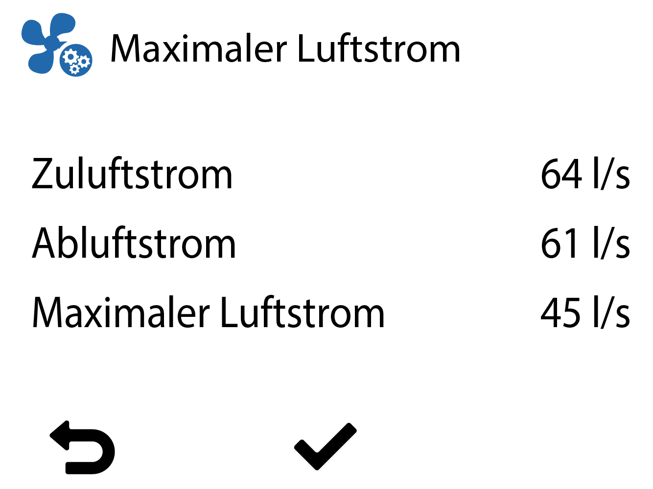 Ist der maximale Luftstrom zu gering, kann der Zu- oder Abluftstrom blockiert sein. Überprüfen Sie in diesem Fall das Lüftungsgerät und die Lüftungskanäle auf Verstopfungen.