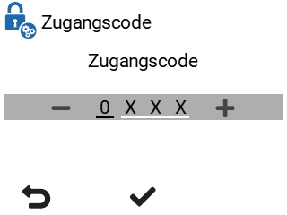 Der Zugriffscode wird verwendet, um die Nutzung der Funktionen des Lüftungsgeräts auf verschiedene Zugriffsebenen zu beschränken. Ist die Zugriffscode-Abfrage aktiviert und die Zugriffsebene begrenzt oder normal, wird der Benutzer aufgefordert den Zugriffscode eingeben, bevor bestimmte Einstellungen geändert werden können.