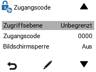 0000, und die Zugriffscode-Abfrage ist deaktiviert.
