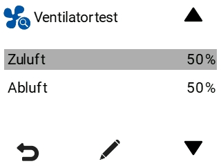 - Gehen Sie in das Wartungsmenü und wählen Sie Ventilatortest.