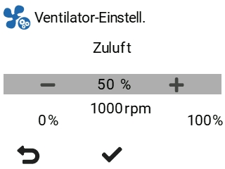 - Wählen Sie den Zuluft- oder Abluftventilator aus und stellen Sie die gewünschten Ventilatorgeschwindigkeiten ein.