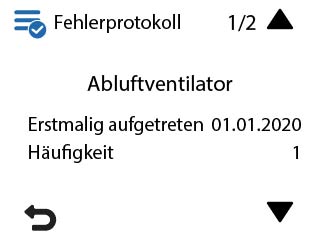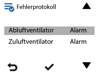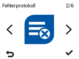 - Drücken Sie auf die Pfeiltasten, um die Fehlermeldungen im Fehlerprotokoll durchzusehen. Zum Quittieren von Fehlermeldungen im Fehlerprotokoll: