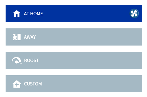 - Noklikšķiniet uz vēlamā ventilācijas režīma zonā Ventilācijas režīmi, lai to atlasītu.