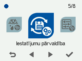 - Atjaunot rūpnīcas iestatījumus — atjauno ventilācijas iekārtas sākotnējos iestatījumus. Visi lietotāja veiktie grozījumi tiek atiestatīti.