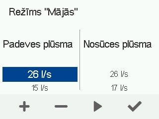 - Iestatiet pieplūdes un nosūces gaisa plūsmas režīmam Mājās un pielāgojiet vārstus atbilstoši ventilācijas plānam.